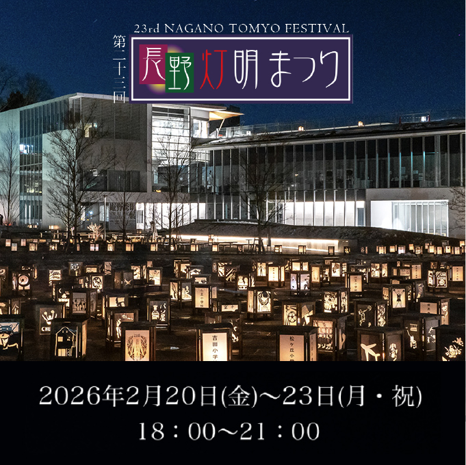 1998年長野冬季オリンピックが開催され、感動と躍動、そして恒久の平和への願いを世界に向けて発信しました。2004年にオリンピックレガシーを継承し、弛まぬ平和への願いを再び世界へと発信するために開催された冬の祭典こそ長野灯明まつりです。第23回を迎える長野灯明まつりでは、平和の灯を絶えぬよう皆さまのご来場お待ちしております。