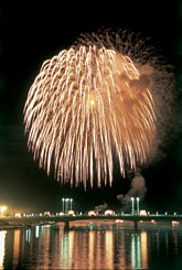 ◇御輿は1日お旅所に滞在。大花火大会(雨天中止)(今池橋下流・中州)