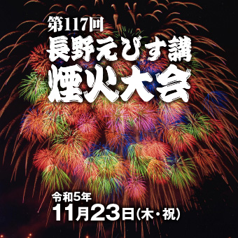 善光寺の門前町として発展してきた長野の歴史と伝統を誇る「長野えびす講煙火大会」は、皆様のご支援ご協力により今年で117回を数える全国有数の花火大会です。ミュージックスターマインをはじめ華やかな花火が晩秋の澄み渡った長野の夜空を彩ります。信州の澄んだ夜空を彩る、晩秋の花火をお楽しみ下さい。 |